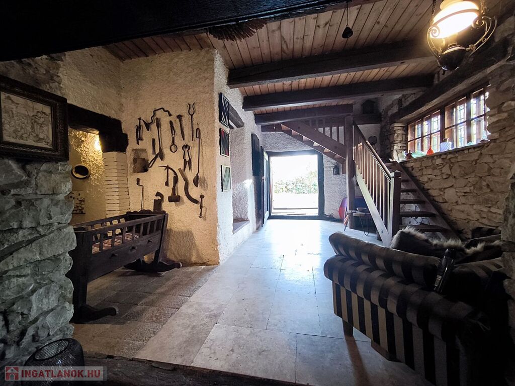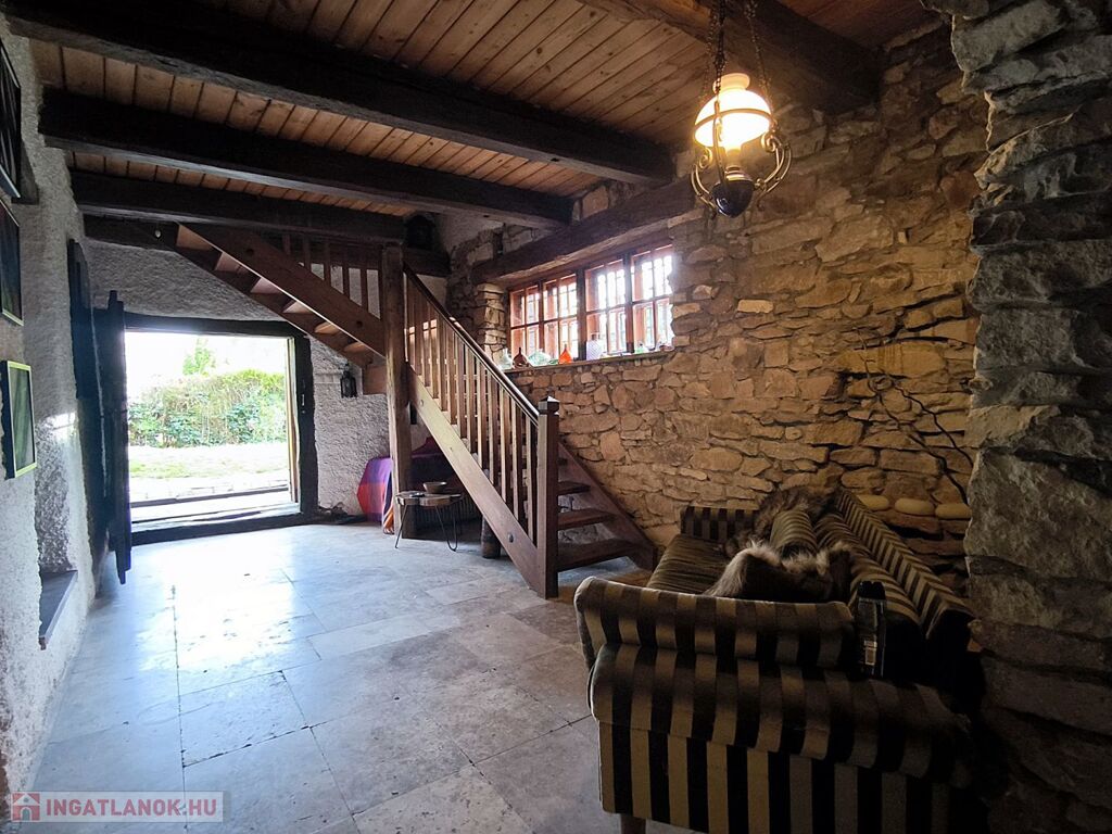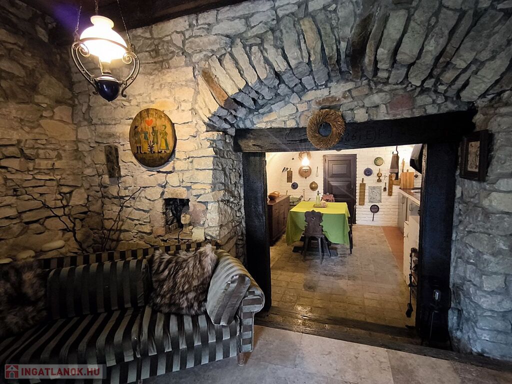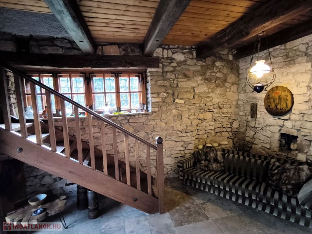 - kívül- belül fröccsentett fehér vakolat, nappali kőfalak, kőből kirakott gyönyörű áthidalók