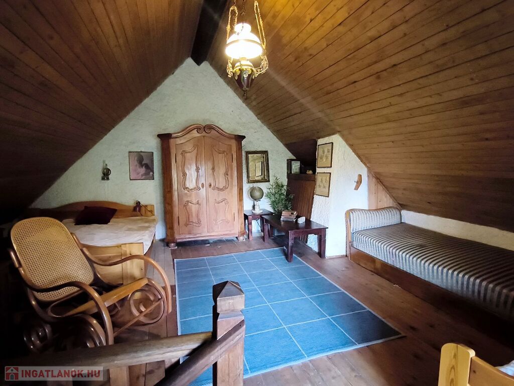 A ház további része is kőfalakból áll. Itt egy nappali, hálószoba került kialakításra. Innen vezet egy fa lépcső a tágas tetőtérbe, ahol nagy belmagasságú, egy légterű háló található.