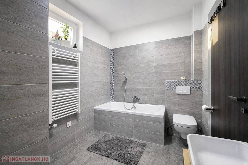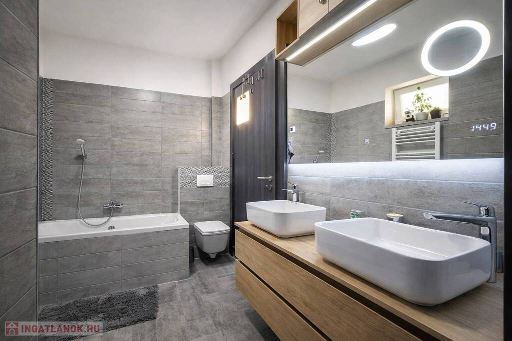 - A fürdőben épített zuhanyzó és fürdőkád valamint dupla mosdó is beépítésre került