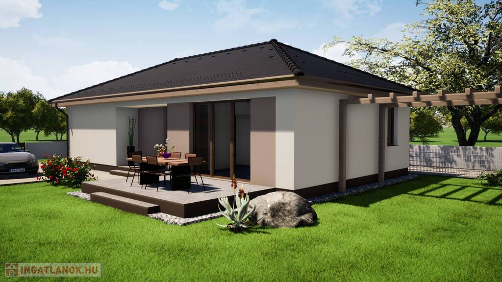 Az ár emelt szintű fűtéskész állapotra vonatkozik 5% Áfával és tartalmazza a telekhányadot, 16 M Ft.