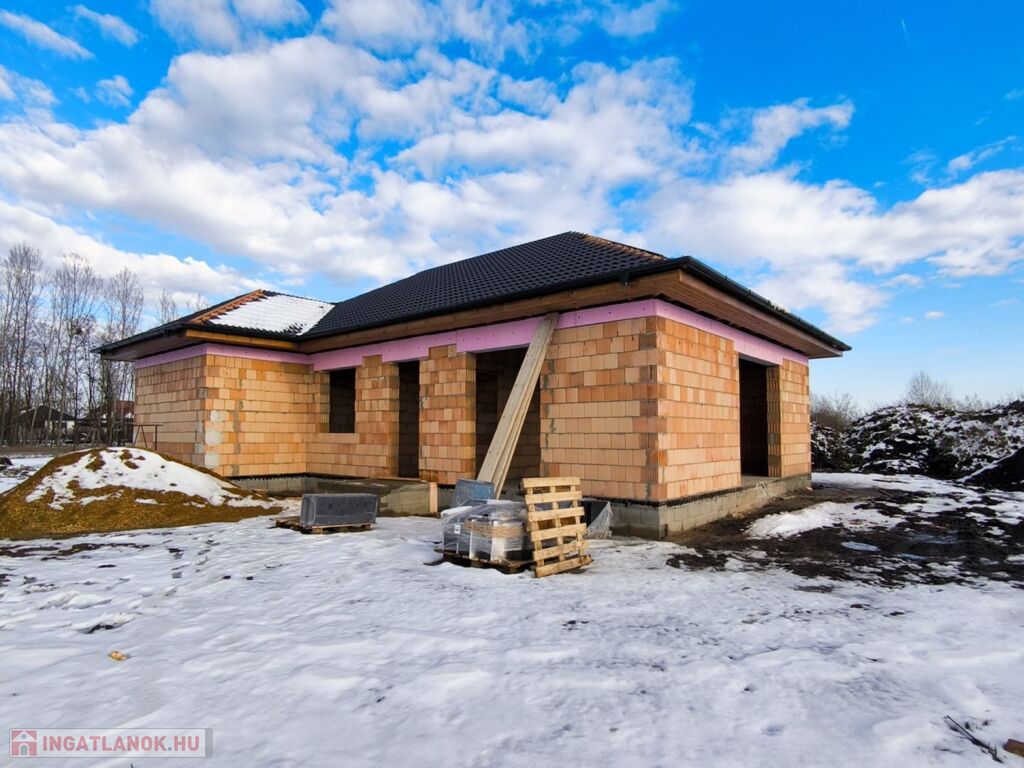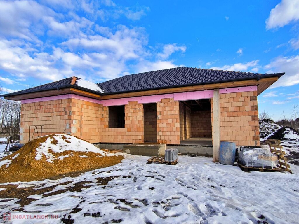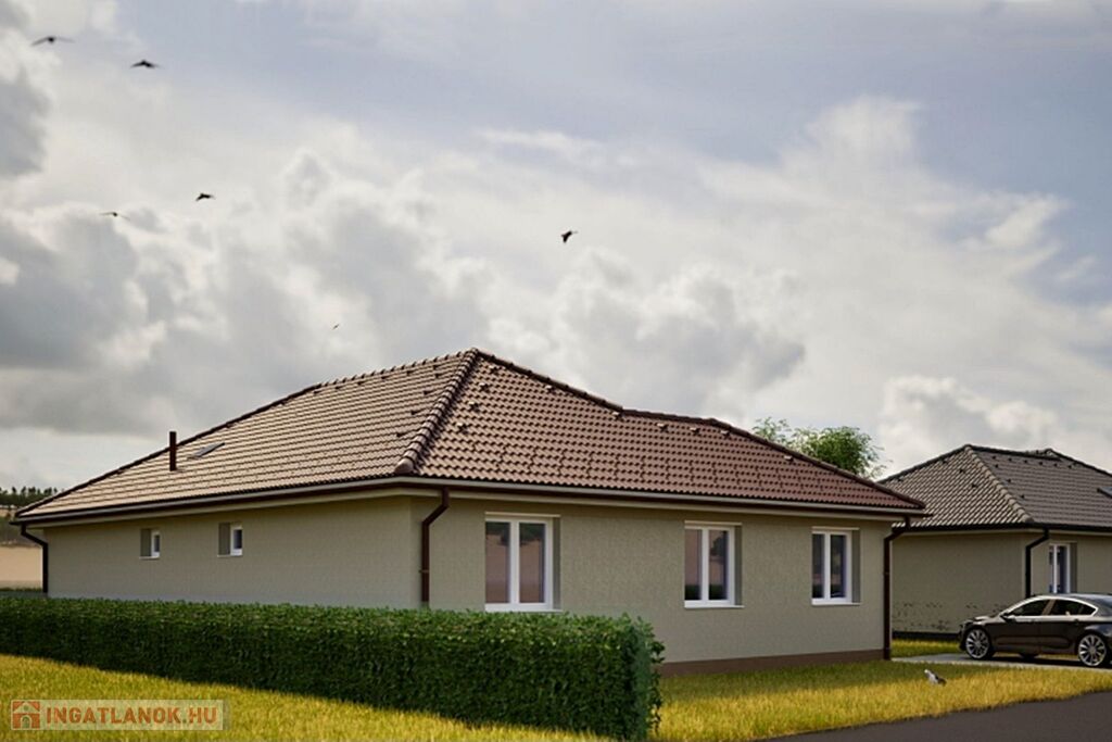 A ház helyiségei: amerikai konyhás nappali, 4 hálószoba, fürdő WC-vel, külön WC, kamra, háztartási helyiség, előszoba, közlekedő. Másik fürdőszoba megoldható