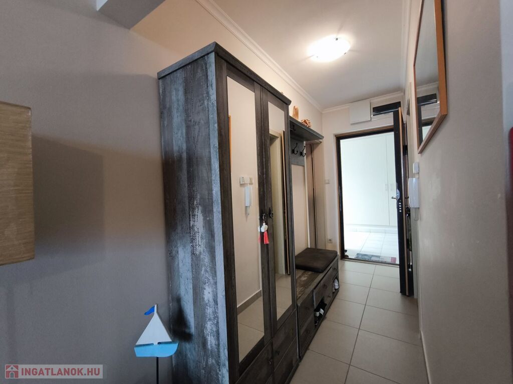 A 2006-ban épült LIFTES társasház 1. emeletén elhelyezkedő 60,43 m2-es, újszerű lakás helyiségei: tágas, 31 m2-es, amerikai-konyhás nappali 12 m2-es fedett erkéllyel, 1 db 10,26 m2-es hálószoba, 4,26 m2-es fürdőszoba zuhanyzóval, előszoba 2,86 m2. A lakás társasházi üdülő besorolású.
