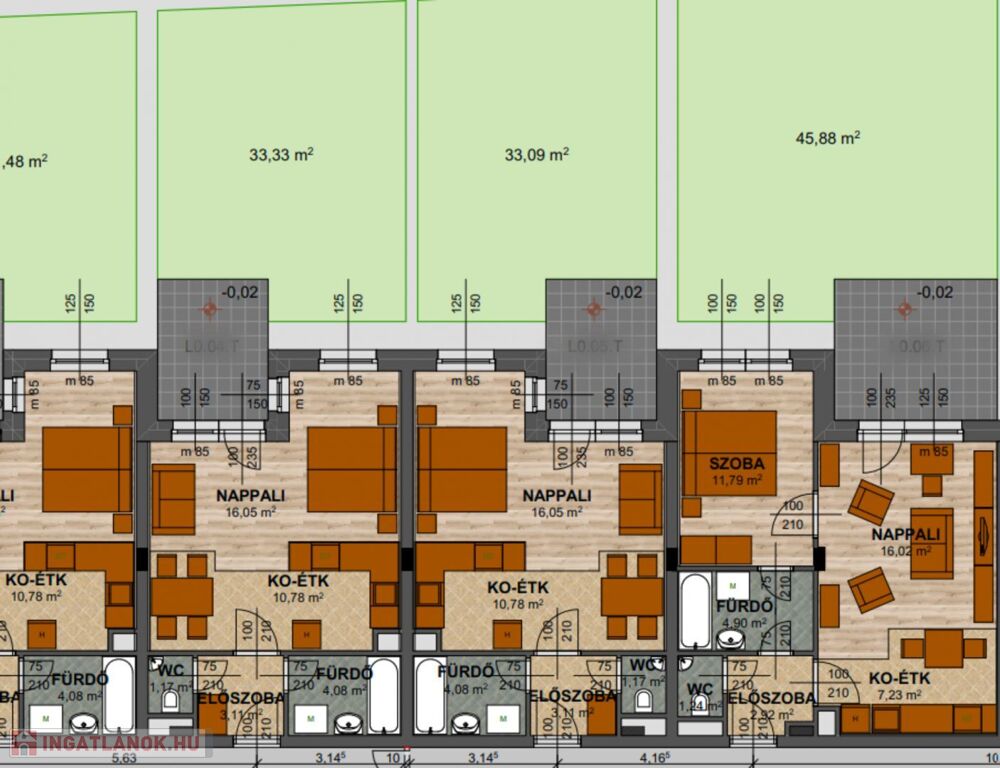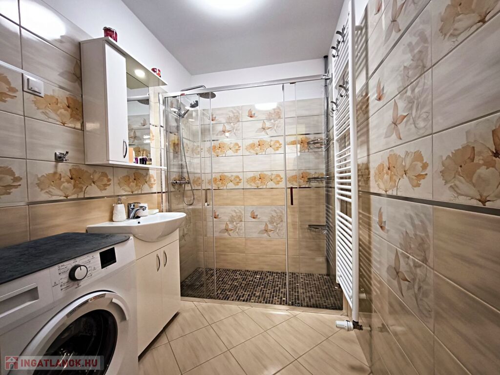 - Nettó lakótér: 35 m²: Amerikai konyhás nappali kis hálósarokkal, fürdőszoba zuhanyzóval, külön WC, előszoba.