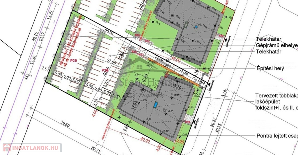 A társasház egy 3228 m2-es hatalmas telekre épült.