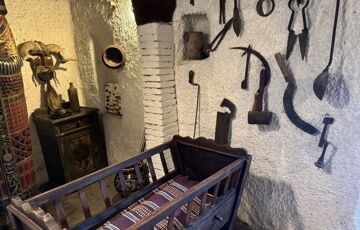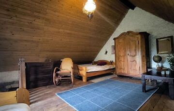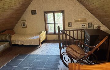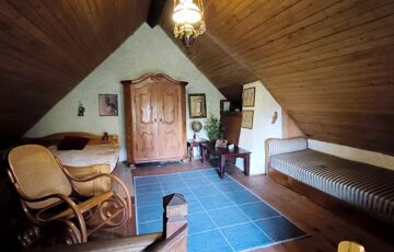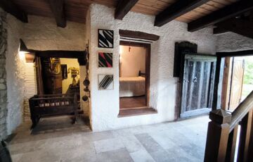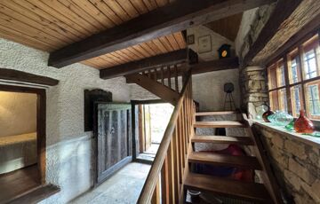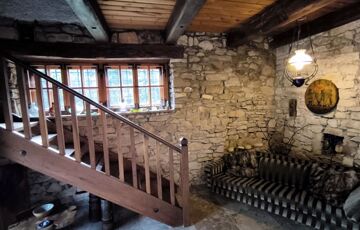 A ház további része is kőfalakból áll. Itt egy nappali, hálószoba került kialakításra. Innen vezet egy fa lépcső a tágas tetőtérbe, ahol nagy belmagasságú, egy légterű háló található.