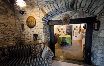 - kívül- belül fröccsentett fehér vakolat, nappali kőfalak, kőből kirakott gyönyörű áthidalók