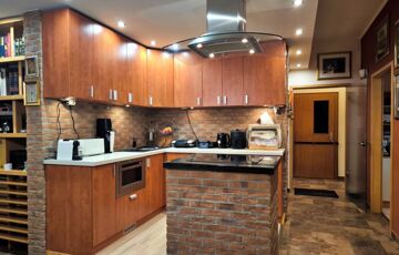 - modern konyhabútor beépített gépekkel, középen szigettel, ahol a kerámialap is elhelyezésre került