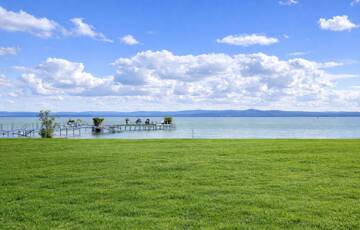 Az Üdülőpark legszebb, 180 fokos balatoni panorámával rendelkező, tóparti lakása most az Öné lehet!
