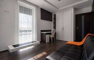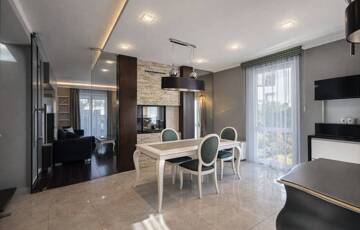 A lakberendező által megálmodott enteriőrben az olasz és spanyol bútorok, az egyedi beépített megoldások, a látványkandalló és az üvegfalak különleges, mégis harmonikus atmoszférát teremtenek. A nappaliból és az étkezőből közvetlen kapcsolat nyílik a térkővel burkolt teraszra és a parkosított, öntözőrendszerrel kiépített, kb. 80 m²-es, intim udvarra – tökéletes helyszín nyugodt, privát kikapcsolódáshoz