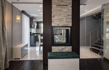 - Bioetanolos látványkandalló és üvegfal a nappali–étkező között